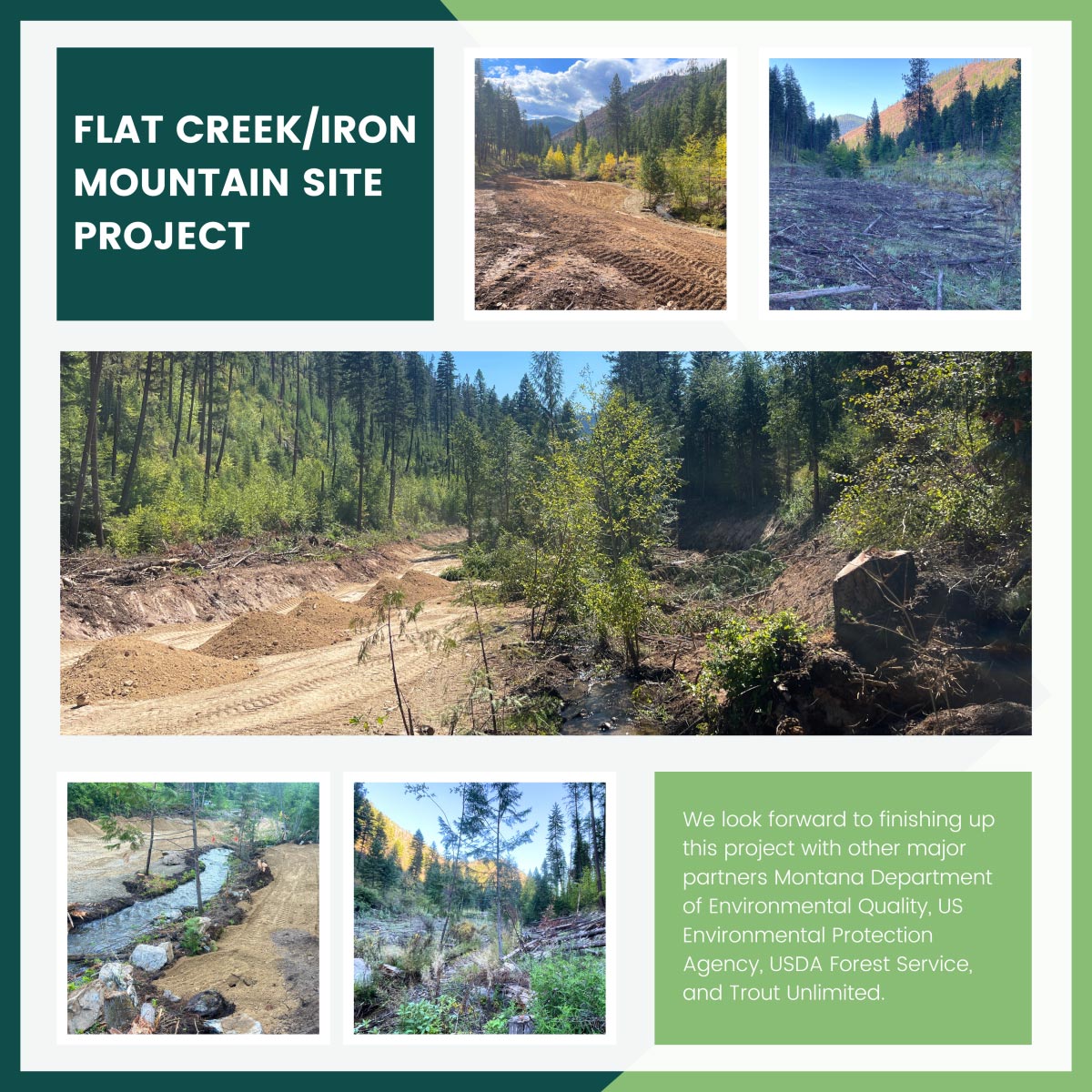 Pioneer designed the first waste removal, Wood Gulch waste repository and reclamation of the upper reaches of Flat Creek for MT DEQ in 2016, work that was completed in 2018. The USDA Forest Service, partnered with Trout Unlimited, is now implementing a plan for removal and disposal of waste materials from the downstream reaches of Flat Creek into a Pioneer-designed expansion of the Wood Gulch repository. Our involvement is to provide the oversight of the repository construction, removal of floodplain and streamside mine tailings deposits, placement of mine waste in the repository, remediation of floodplain, and repository closure.